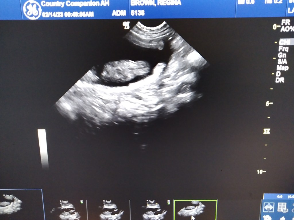 Look at that! That little oval shape is one little chubby puppy! The vet kept saying “oh it’s swimming around” so they certainly seem to be active. A dog only has about a 9 week gestation time. That’s a lot of action under a short time, and now Regina’s pups only have one more month until they are all here!